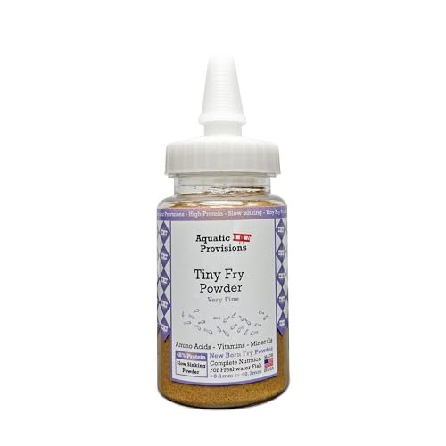 The Tiny Fry Fish Food by Aquatic Provisions comes in a finely powdered form, making it perfect for the delicate mouths of newborn fish. Its powder consistency ensures that the fry can easily consume the food without difficulty, which is crucial during their early stages of life. The nutritional formulation supports vital growth, helping fry develop into healthy adult fish more effectively.