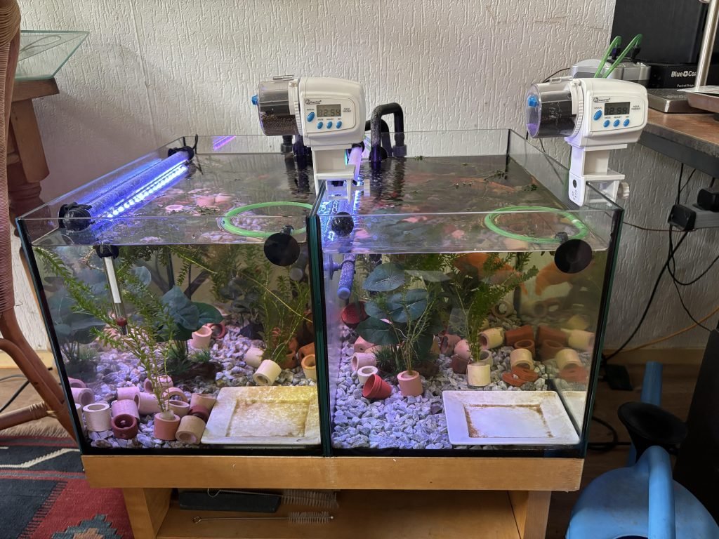 Setting up a fish tank with an automated feeder makes feeding easier. It ensures your fish get food even when you’re not home.